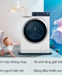 Máy giặt Electrolux Inverter 10 kg EWF1024P5WB có thiết kế sang trọng, gam màu trắng tinh tế, làm nổi bật không gian nội thất cho gia đình.