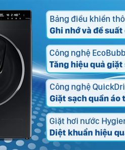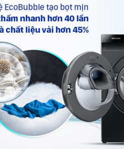 Công nghệ EcoBubble kích hoạt nước giặt/bột giặt với sự kết hợp giữa khí và nước, tạo thành bong bóng siêu mịn thẩm thấu vào sợi vải nhanh gấp 40 lần so với cơ chế máy giặt thông thường.