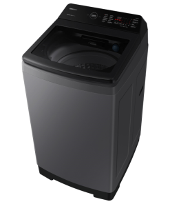 – Kiểu dáng: máy giặt cửa trên – lồng đứng dạng hình khối chữ nhật đứng thiết kế tối giản, hiện đại, tông màu đen – xám trang nhã, tô điểm cho không gian sống của bạn sang trọng, đẳng cấp hơn.