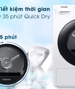 Chiếc máy sấy Samsung này có thiết kế cửa trước hiện đại, toàn bộ thân máy được bao phủ bởi gam màu trắng trung tính dễ dàng phối hợp với mọi không gian nội thất.