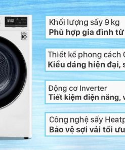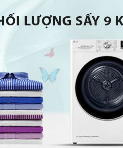 LG DVHP09W đáp ứng khối lượng quần áo sấy đến 9kg, phù hợp cho những hộ gia đình có số thành viên từ 3 – 5 người.