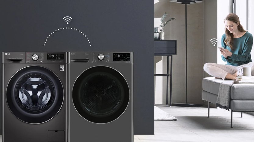 Ngoài ra, máy sấy LG DVHP50M còn có tính năng ghép nối thông minh với LG ThinQ. Thông qua Wi-Fi, tính năng này sẽ giúp máy sấy tự động lựa chọn chu trình sấy thích hợp thông qua cách nhận diện dữ liệu từ máy sấy quần áo LG.