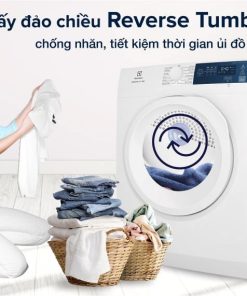 – Công nghệ sấy đảo chiều Reverse Tumbling: tình trạng quần áo xoắn rối và nhăn sẽ được giảm thiểu đáng kể (đến 32%) nhờ lồng sấy chuyển động và đảo chiều liên tục. Giờ đây, việc là ủi của bạn sẽ trở nên nhanh chóng và dễ dàng hơn.