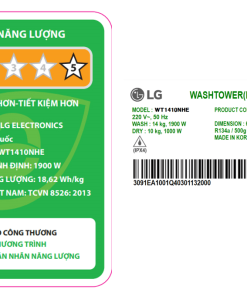 Tóm lại, tháp giặt sấy LG WashTower Inverter giặt 14 kg – sấy 10 kg WT1410NHE là thiết bị giặt sấy tất cả trong một được trang bị nhiều công nghệ, tiện ích hiện đại hỗ trợ bạn làm sạch quần áo, sử dụng thiết bị dễ dàng, tiết kiệm điện, lựa chọn thích hợp cho gia đình có trên 7 người với khối lượng giặt 14 kg, sấy 10 kg.
