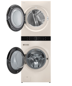 – LG WashTower WT1410NHE có kiểu dáng máy giặt lồng ngang – cửa trước, mang vẻ ngoài tinh tế, tông màu be thanh lịch, kích thước nhỏ gọn, đặt vừa vặn vào cả những không gian hẹp.