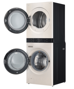 – Bảng điều khiển cảm ứng chỉ dẫn tiếng Việt kết hợp màn hình hiển thị sắc nét, thiết kế trực quan và nằm ngay ở vị trí trung tâm, bố trí cao hơn bảng điều khiển của 2 máy giặt và máy sấy đặt chồng lên nhau đến 85 mm. Nhờ đó người dùng dễ dàng tiếp cận và tùy chỉnh chương trình giặt, sấy linh hoạt.