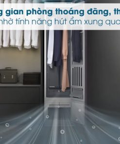 Khi bạn mở cửa tủ chế độ hút ẩm Dehumidification sẽ tự động hút luồng khí ẩm trong phòng và sẽ đẩy luồng không khí khô ra ngoài giữ cho căn phòng của bạn luôn khô thoáng, tránh nấm mốc phát triển gây hại cho quần áo và sức khỏe của bạn.