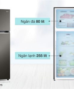 – Dung tích ngăn đá tủ lạnh LG này là 80 lít, gồm có 1 kệ chia làm 2 ngăn và 2 khay chứa (bên cánh cửa) cùng 1 hộp làm đá di động.