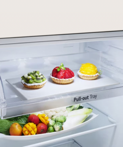 Dung tích ngăn lạnh 255 lít, gồm có 1 ngăn chứa Pull-out Tray, 2 kệ chia làm 3 ngăn, 1 hộc đựng rau củ và 3 khay chứa (bên cánh cửa).