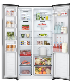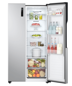 – Dòng tủ lạnh side by side, chất liệu cửa tủ được làm từ thép không gỉ bền chắc với màu xám tinh tế, hòa hợp với mọi không gian nội thất.