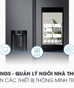 Bạn chỉ cần sử dụng giọng nói hoặc chạm trên màn hình chính của tủ lạnh là có thể điều khiển các thiết bị thông minh và thiết bị IoT (Internet of Things) có kết nối Wifi và tài khoản Samsung qua ứng dụng SmartThings.