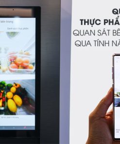 Bạn có thể dễ dàng quan sát thực phẩm bên trong tủ lạnh mọi lúc mọi nơi thông qua điện thoại hoặc truy cập nhanh bằng cách chạm màn hình chính trên tủ lạnh. Tiện lợi trong việc lên kế hoạch ăn uống và mua sắm thực phẩm cho cả gia đình.