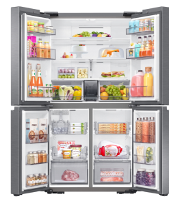 – Samsung Inverter 649 lít RF59C700ES9/SV có kiểu dáng sang trọng với thiết kế tủ lạnh MutiDoor 4 cánh. Chất liệu cửa tủ bằng thép không gỉ dễ lau chùi, có độ bền cao và duy trì vẻ thẩm mỹ tốt trong suốt thời gian dài sử dụng.