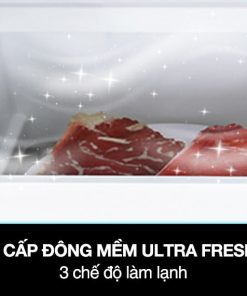 – Ngăn cấp đông mềm Ultra Fresh -3 độ C: Hỗ trợ người dùng tùy chỉnh mức nhiệt độ phù hợp với nhóm thực phẩm cần được bảo quản như cấp đông mềm thịt cá (-3℃ đến -1℃), làm lạnh thực phẩm tươi sống nhiều giờ (0℃) hoặc làm lạnh đồ uống (1 – 5℃).