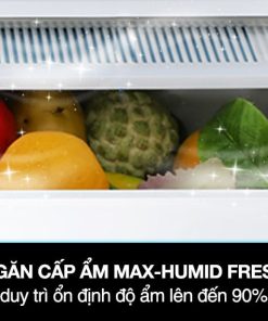 – Ngăn cấp ẩm Max-humid fresh: Được thiết kế màng giữ ẩm đặc biệt có thể giữ lại các hạt sương ẩm li ti, giúp duy trì độ ẩm ổn định đến 90%, nhờ đó thực phẩm luôn giữ được độ tươi ngon và hàm lượng chất dinh dưỡng nhiều nhất có thể.
