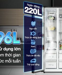 – Dung tích sử dụng 596 lít, thích hợp cho gia đình trên 5 thành viên hoặc gia đình có ít thành viên hơn nhưng với nhu cầu lưu trữ thực phẩm cao.