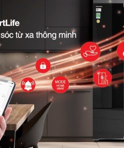 – Kiểu dáng tủ lạnh Side by Side 2 cửa với chất liệu cửa tủ là kính nên mang đến sự tinh tế và hiện đại cho không gian. Phần tay cầm có thiết kế âm ẩn nên nhìn chiếc tủ giống như một khối liền mạch mang đến sự gọn gàng.